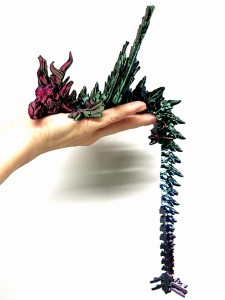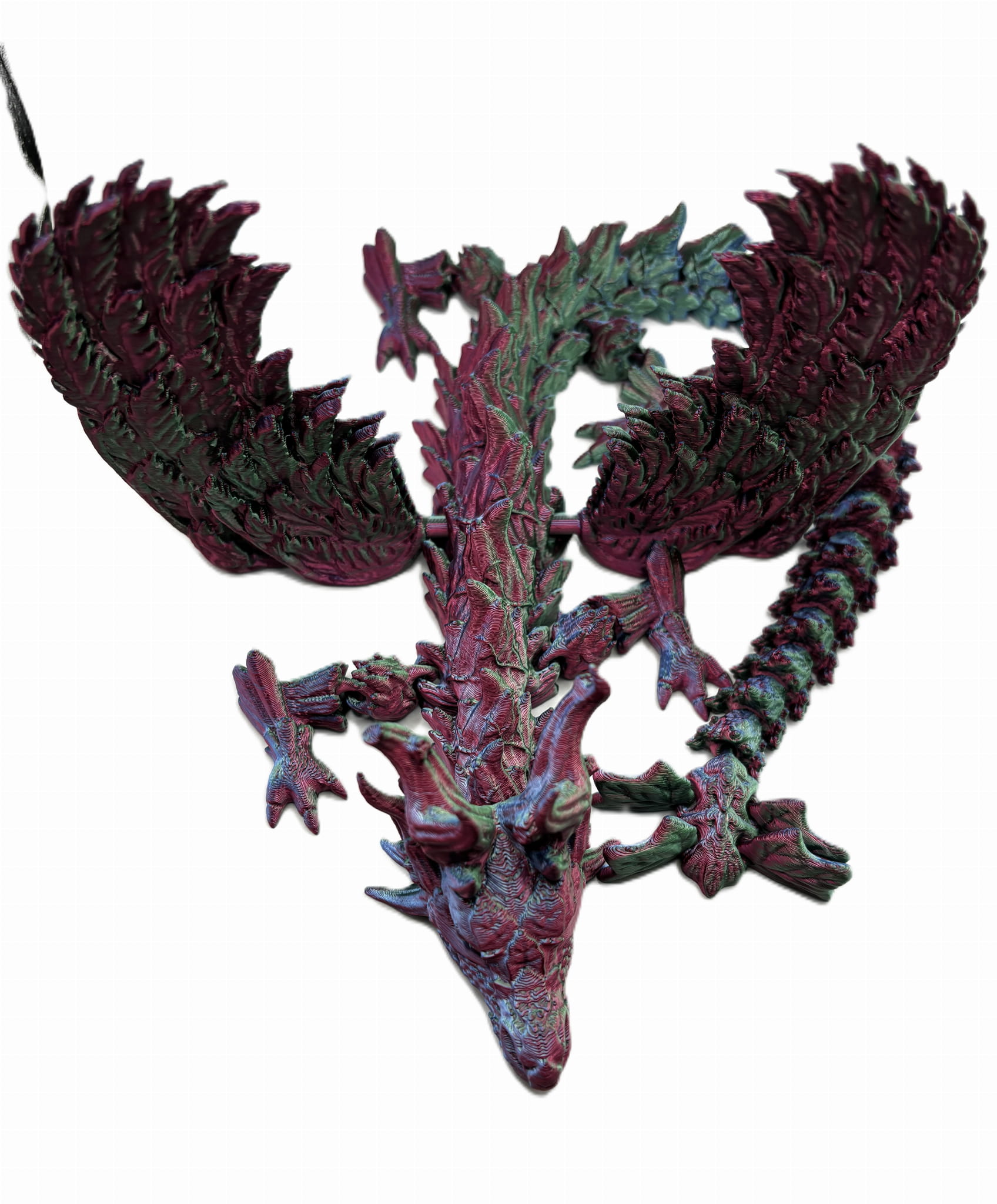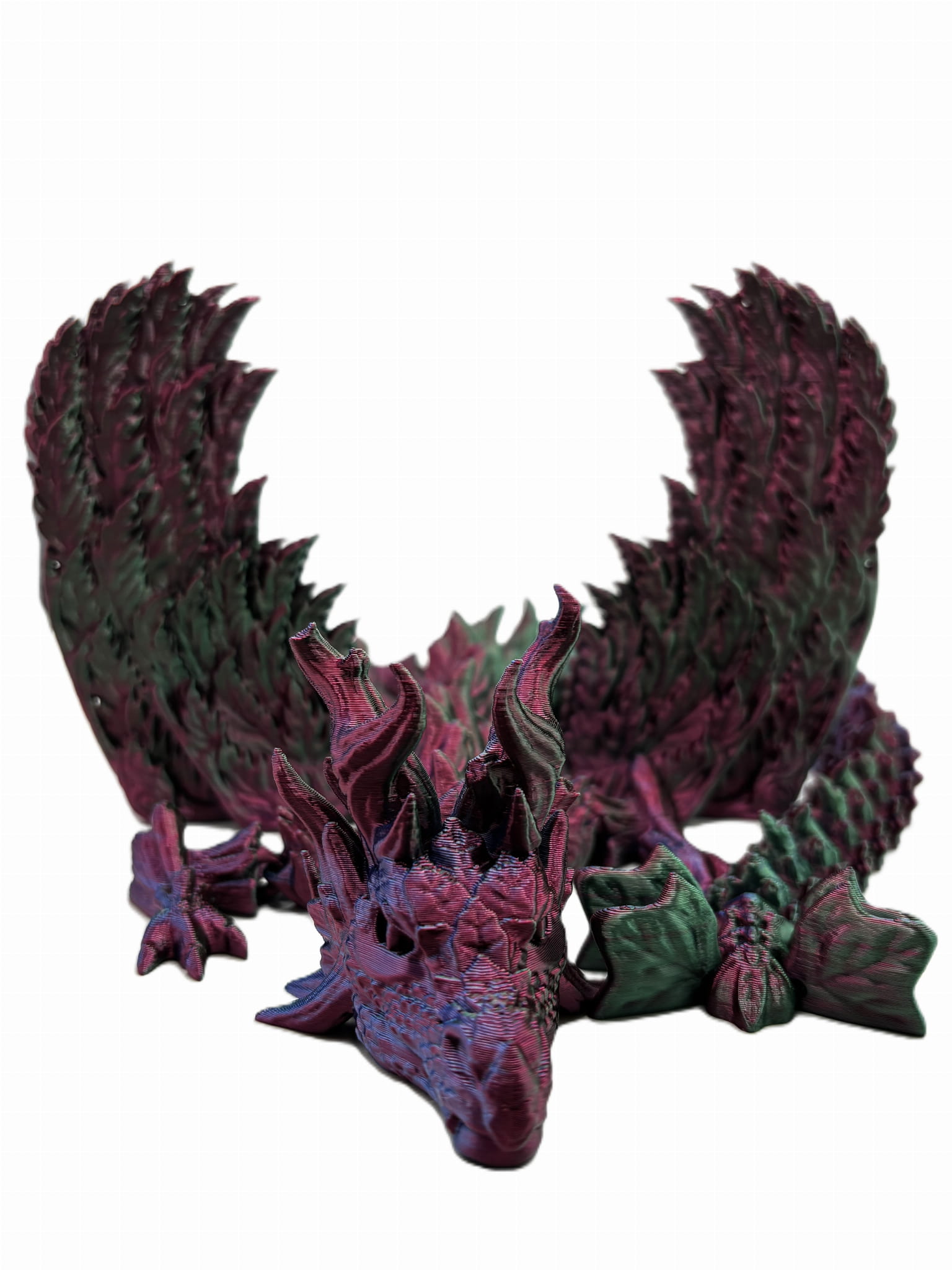 Ta ruchoma figurka smoka to coś więcej niż dekoracja – to symbol nowoczesnego, ekologicznego podejścia do tworzenia. Została wykonana metodą druku 3D z biodegradowalnego filamentu PLA pochodzenia roślinnego, wytwarzanego przez polskiego producenta. Każdy egzemplarz powstaje lokalnie, bez odpadów i nadprodukcji – dzięki czemu masz pewność, że kupujesz produkt przyjazny środowisku i wyjątkowy w każdym detalu.