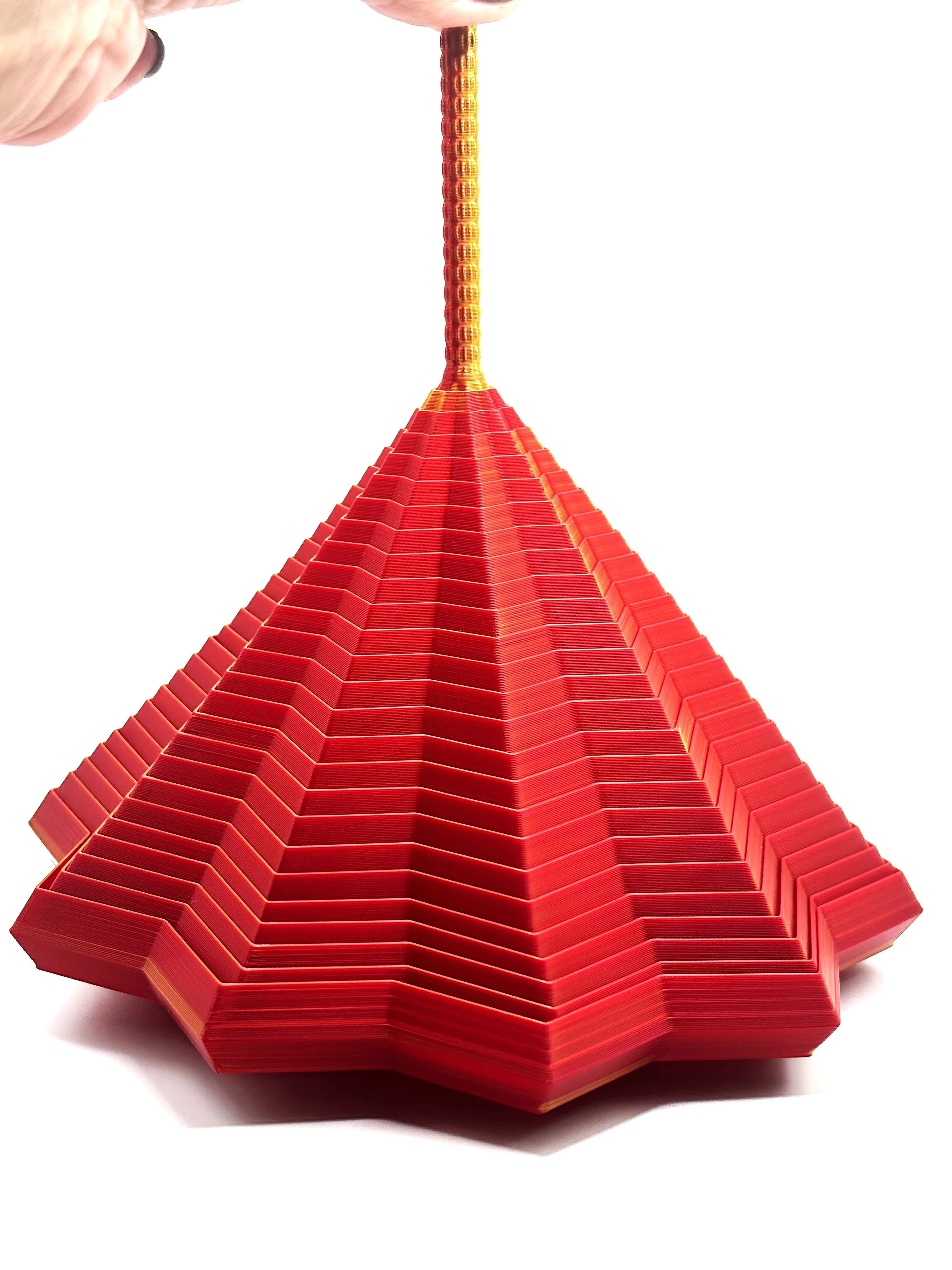 Materiał: PLA (biodegradowalny, pochodzenia roślinnego) Producent filamentu: polski Kolor: pomarańczowo-czerwony mieniący Technologia druku: FDM Ruchome elementy: tak Przeznaczenie: dekoracja, figurka kolekcjonerska, ekologiczny prezent.