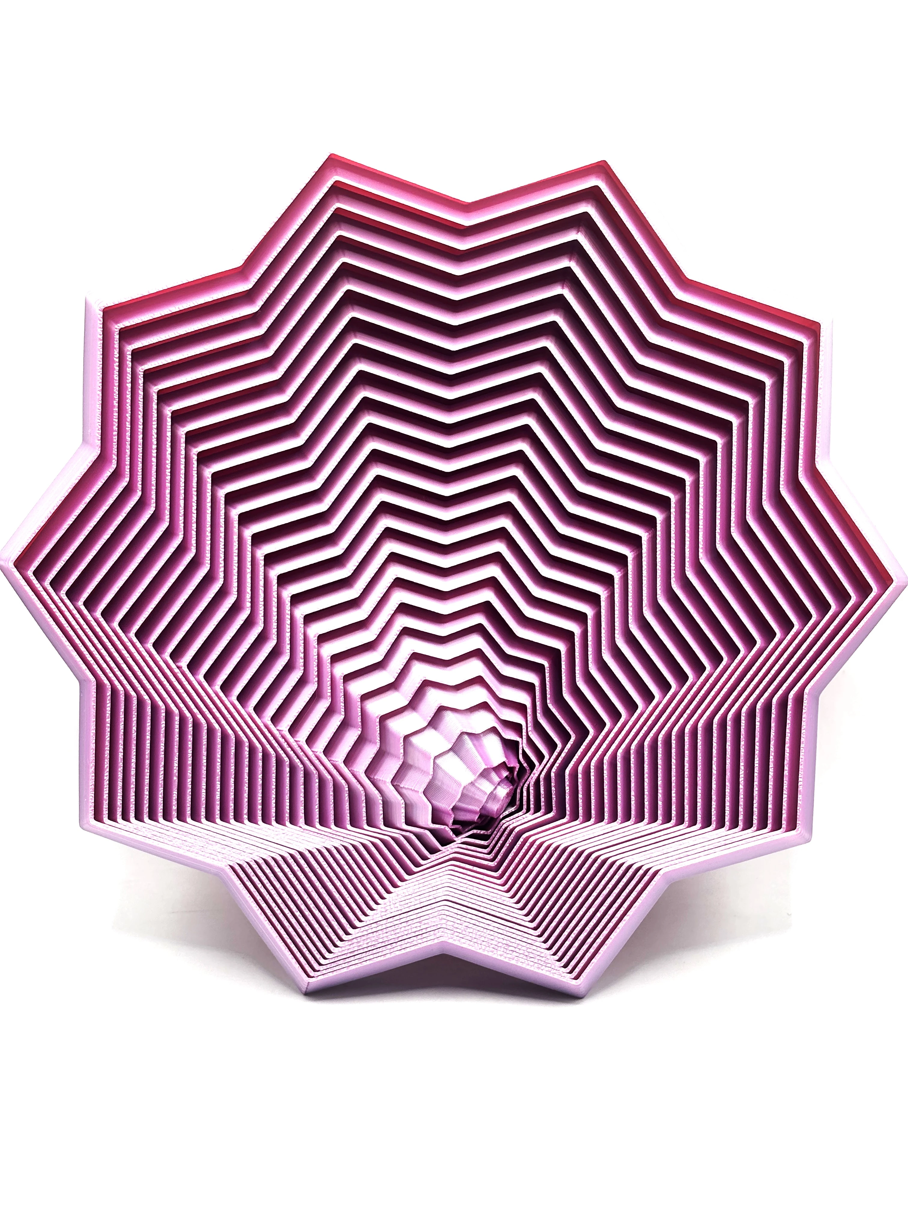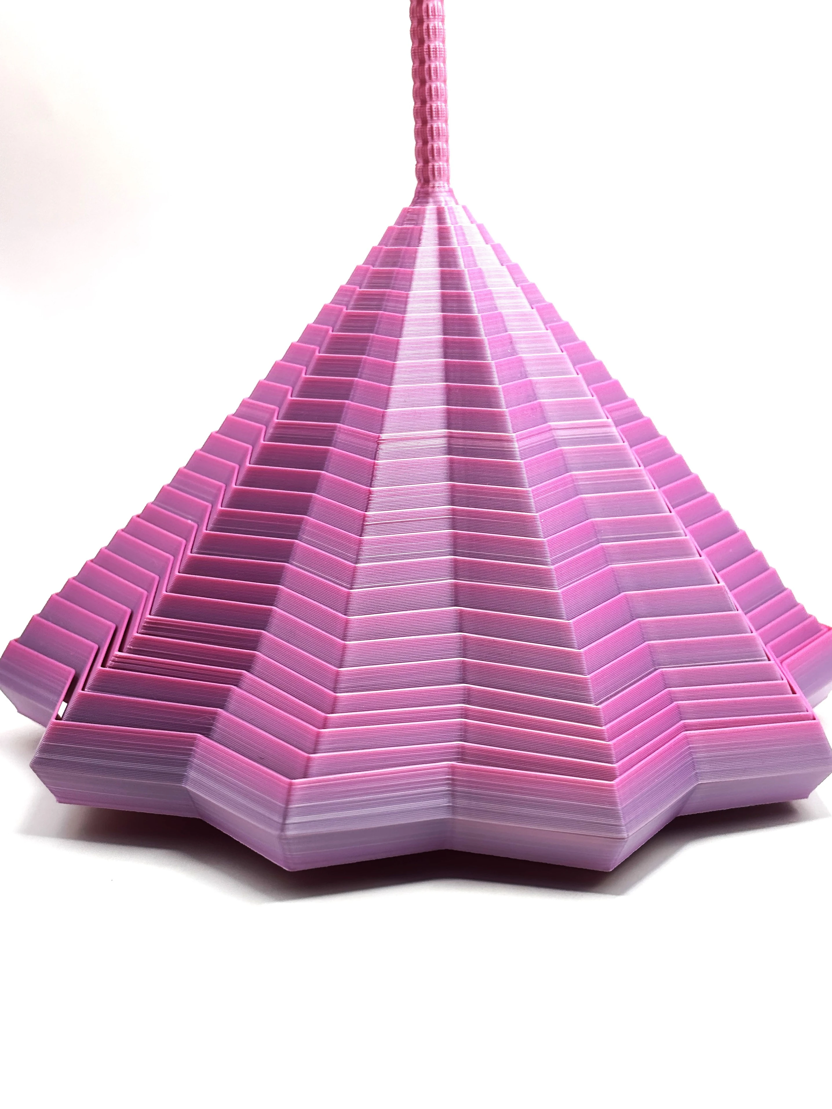 Materiał: PLA (biodegradowalny, pochodzenia roślinnego) Producent filamentu: polski Kolor: różowo-fioletowy mieniący Technologia druku: FDM Ruchome elementy: tak Przeznaczenie: dekoracja, figurka kolekcjonerska, ekologiczny prezent.