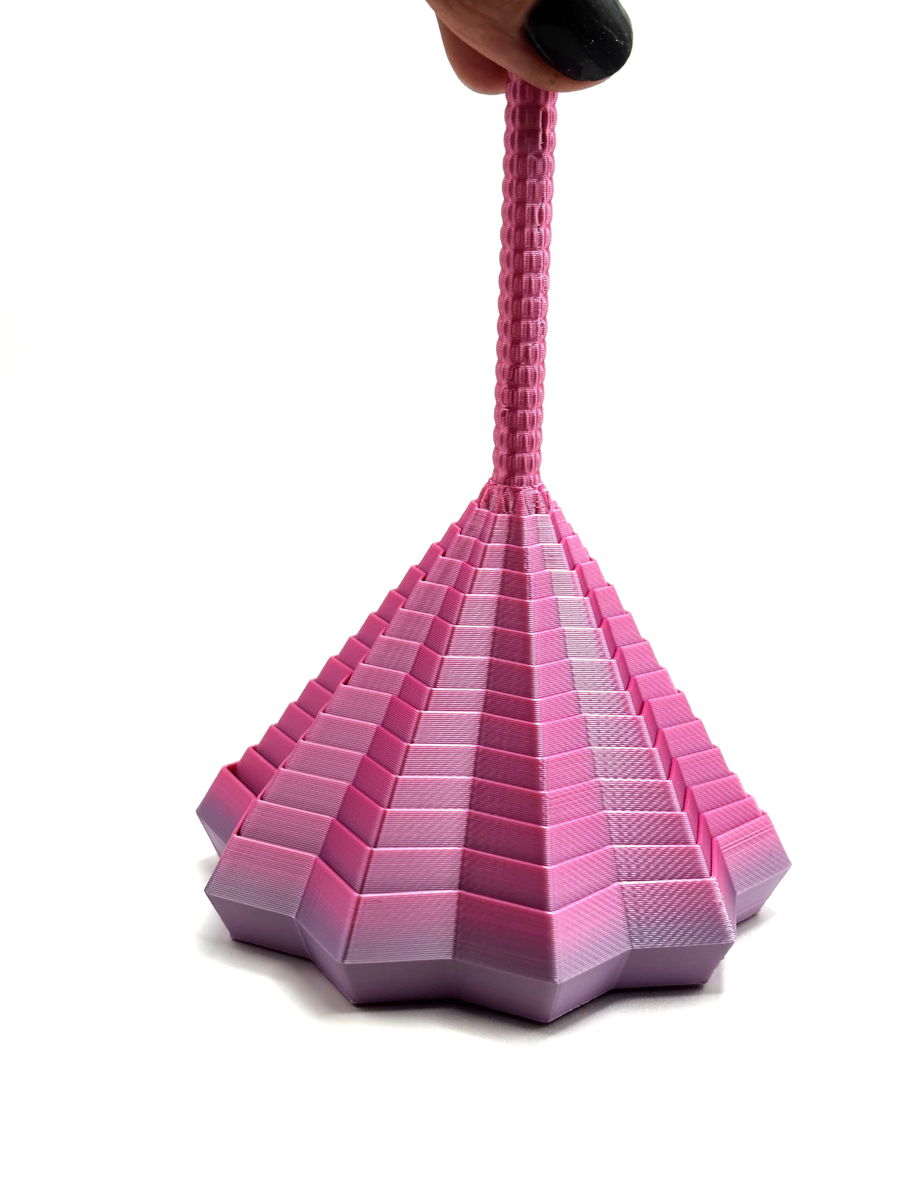 Materiał: PLA (biodegradowalny, pochodzenia roślinnego) Producent filamentu: polski Kolor: różowo-fioletowy mieniący Technologia druku: FDM Ruchome elementy: tak Przeznaczenie: dekoracja, figurka kolekcjonerska, ekologiczny prezent.