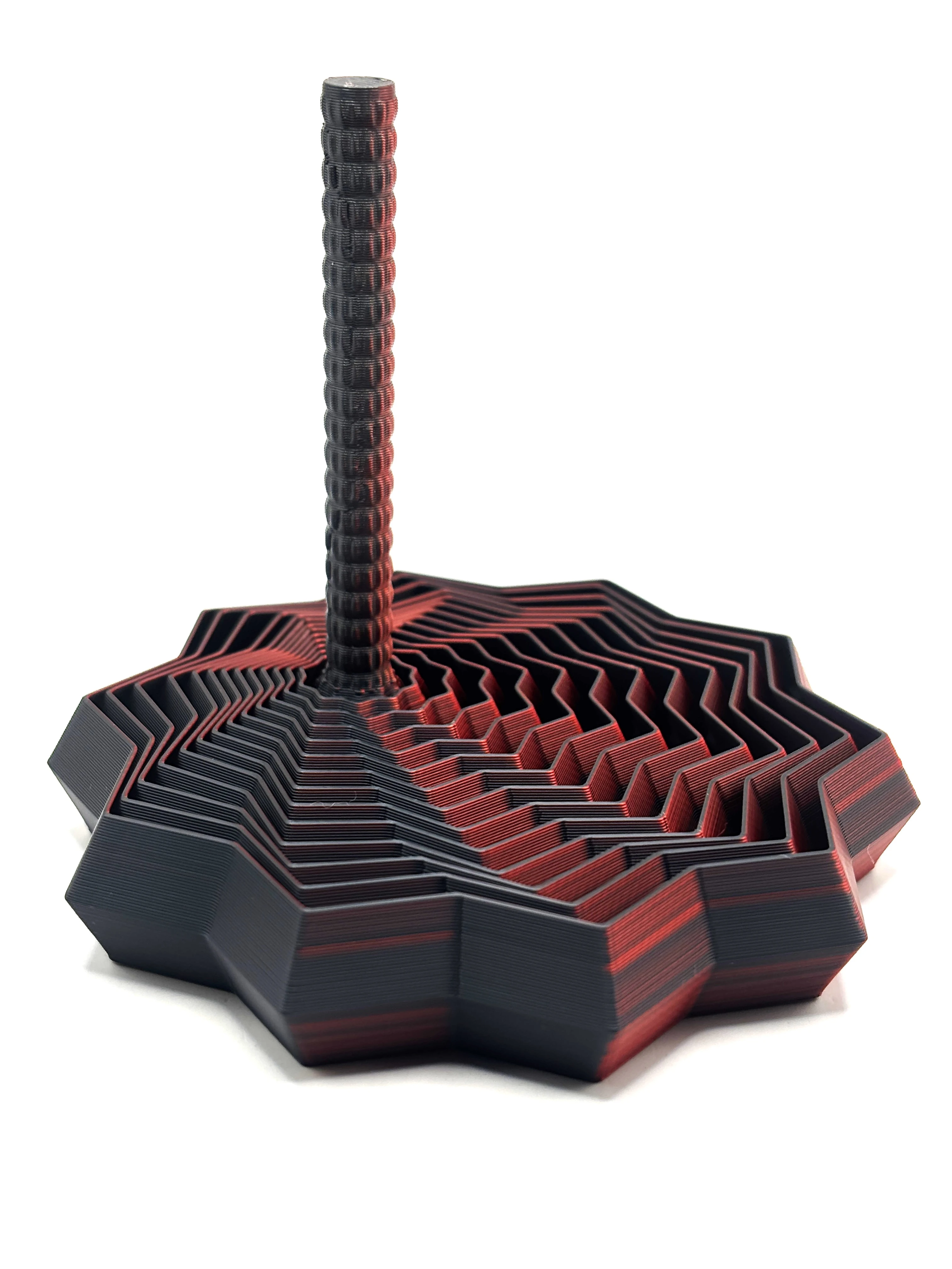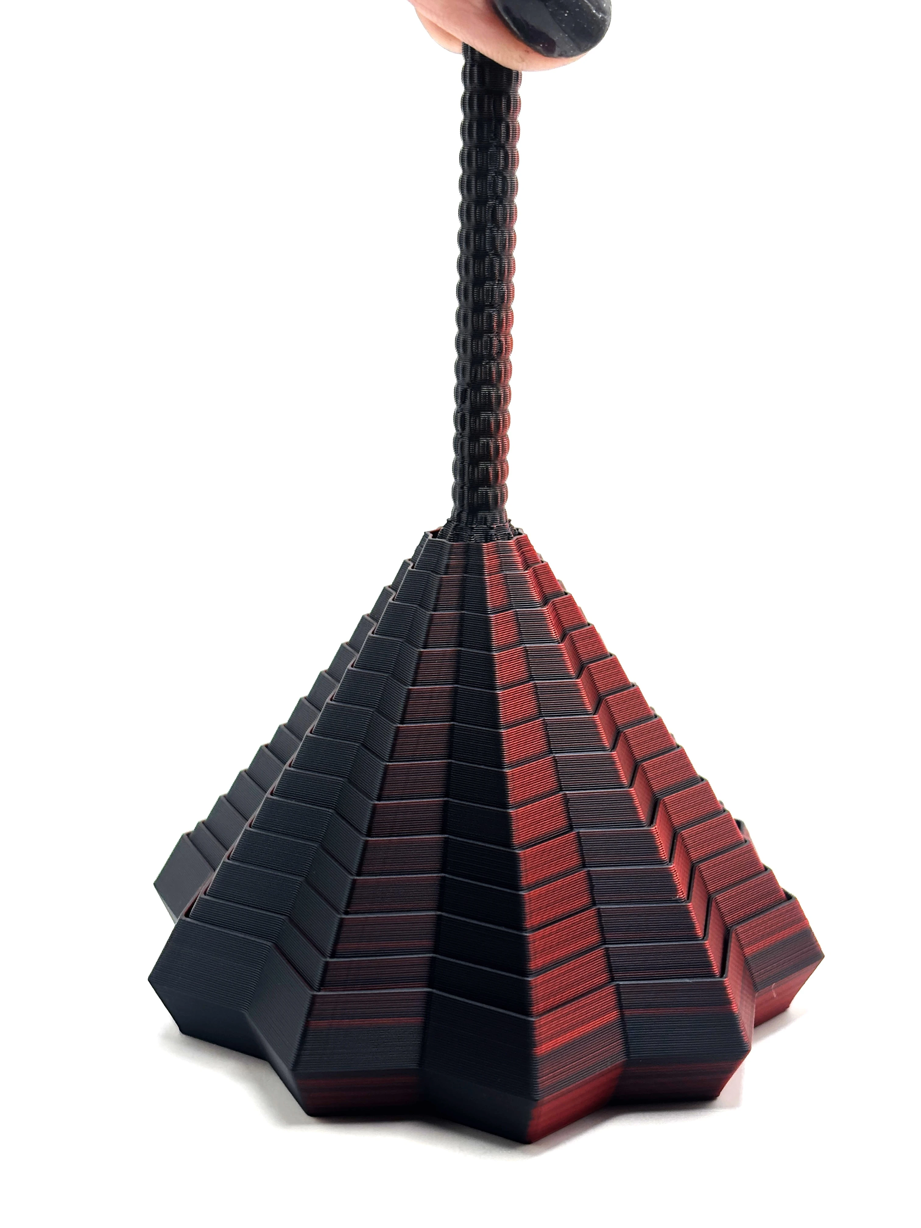 Materiał: PLA (biodegradowalny, pochodzenia roślinnego) Producent filamentu: polski Kolor: czerwono-czarny mieniący Technologia druku: FDM Ruchome elementy: tak Przeznaczenie: dekoracja, figurka kolekcjonerska, ekologiczny prezent.