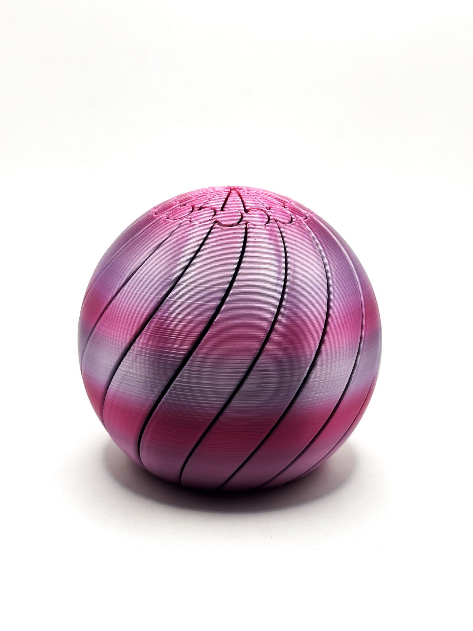 Antystresowa Zakręcona Piłka 3D to unikatowy gadżet wykonany metodą druku 3D z wysokiej jakości filamentów o satynowym wykończeniu. Spiralna forma symbolizuje ruch i harmonię, a ergonomiczny kształt sprawia, że przyjemnie leży w dłoni. Doskonale sprawdza się jako antystresowy element biurkowy lub kreatywny prezent. Gadżet antystresowy 3D to proste, ale efektowne akcesorium zaprojektowane z myślą o relaksie i stymulacji sensorycznej. Wykonany metodą druku 3D z materiału PLA, charakteryzuje się precyzyjną geometrią i trwałą, lekką konstrukcją.
