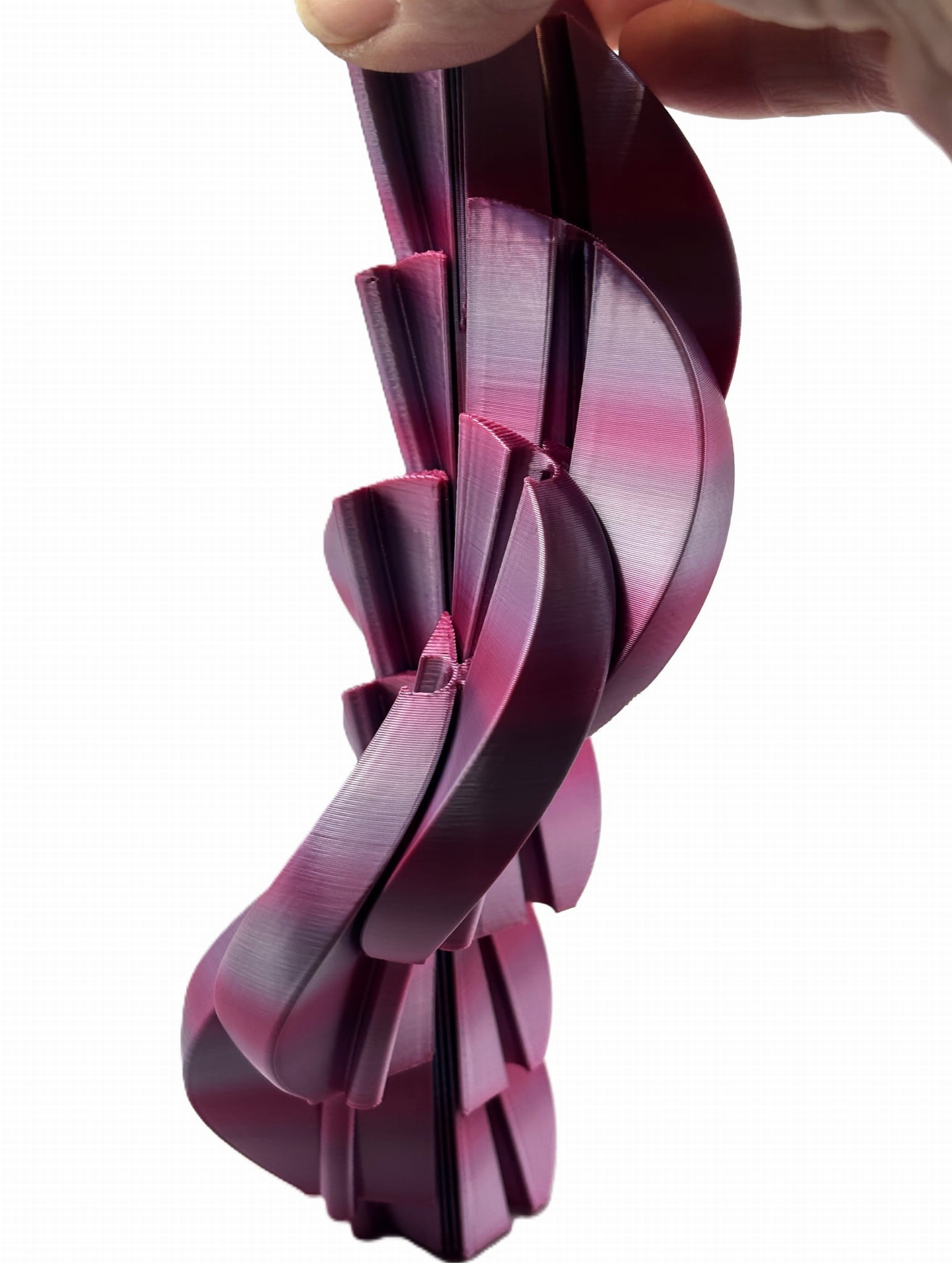 Materiał: PLA (biodegradowalny, pochodzenia roślinnego) Producent filamentu: polski Kolor: różowo - fioletowy mieniący Technologia druku: FDM Ruchome elementy: tak Przeznaczenie: dekoracja, figurka kolekcjonerska, ekologiczny prezent.