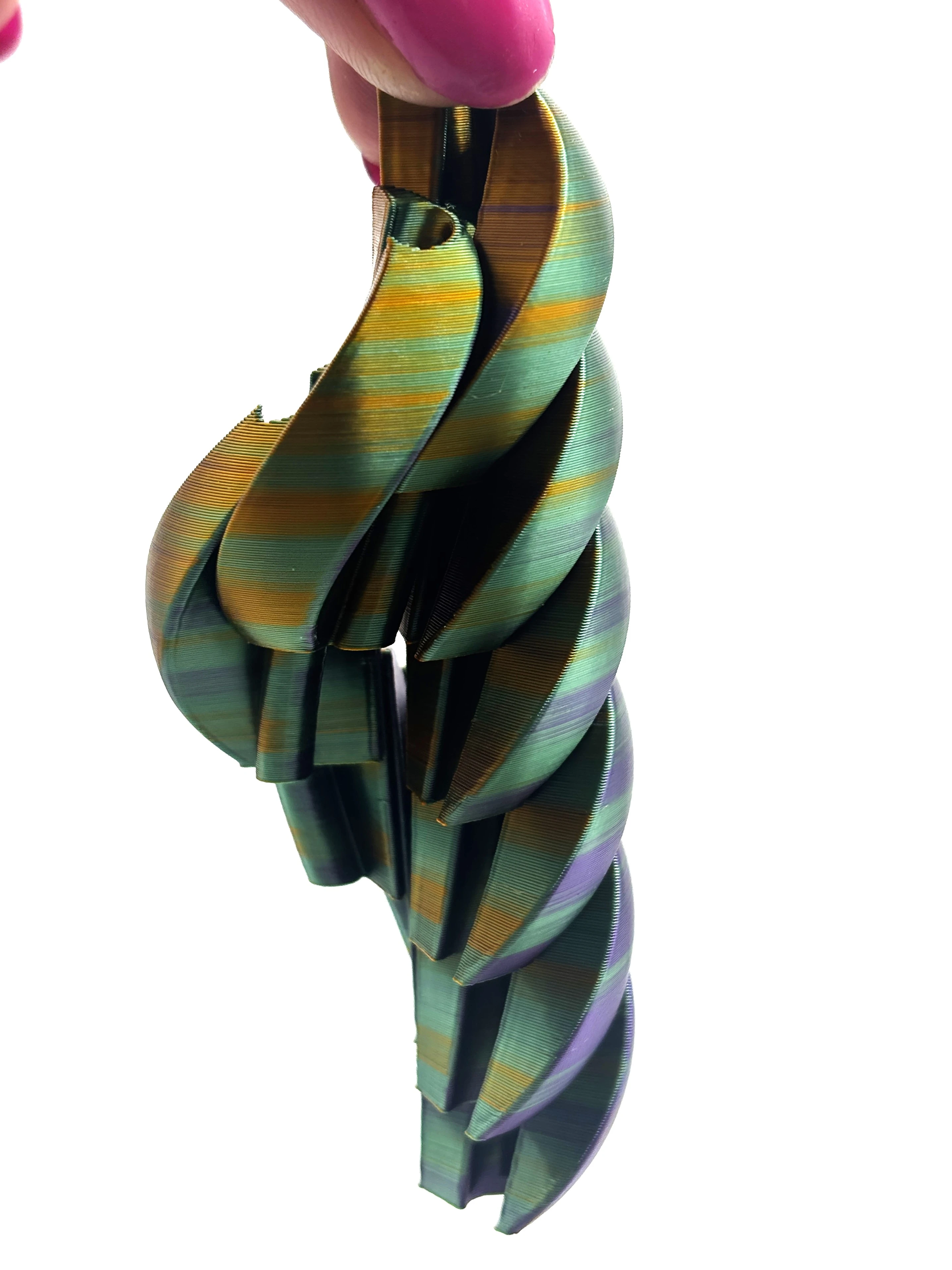 Antystresowa Zakręcona Piłka 3D to unikatowy gadżet wykonany metodą druku 3D z wysokiej jakości filamentów o satynowym wykończeniu. Spiralna forma symbolizuje ruch i harmonię, a ergonomiczny kształt sprawia, że przyjemnie leży w dłoni. Doskonale sprawdza się jako antystresowy element biurkowy lub kreatywny prezent. Gadżet antystresowy 3D to proste, ale efektowne akcesorium zaprojektowane z myślą o relaksie i stymulacji sensorycznej. Wykonany metodą druku 3D z materiału PLA, charakteryzuje się precyzyjną geometrią i trwałą, lekką konstrukcją.
