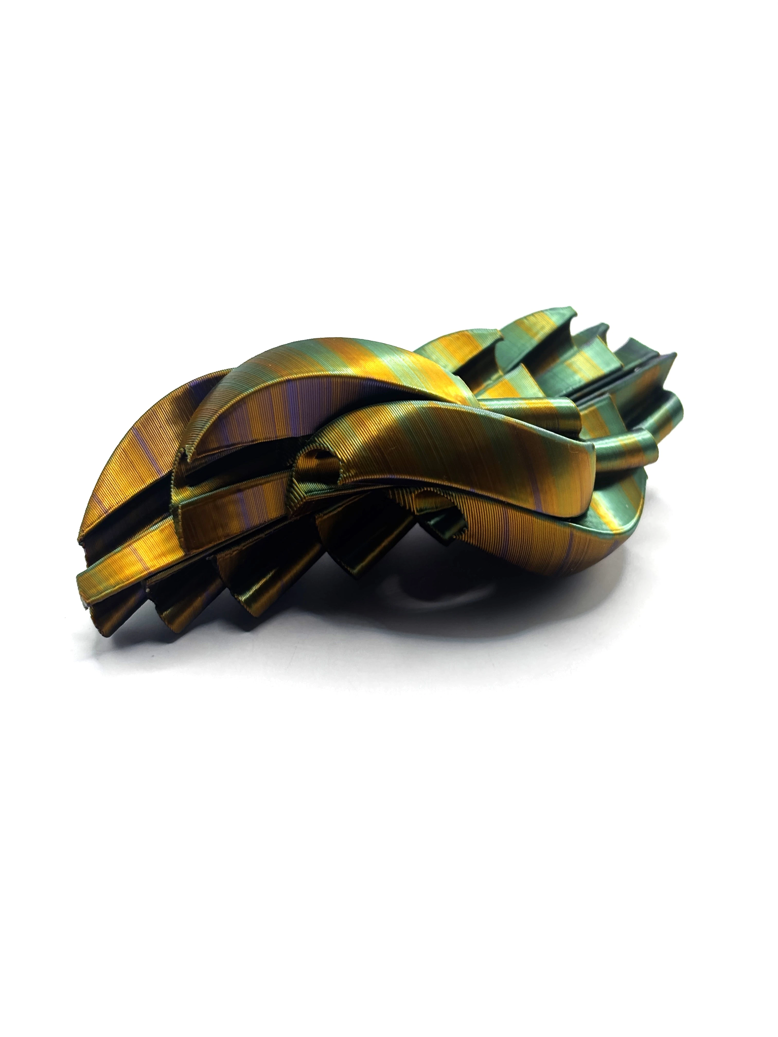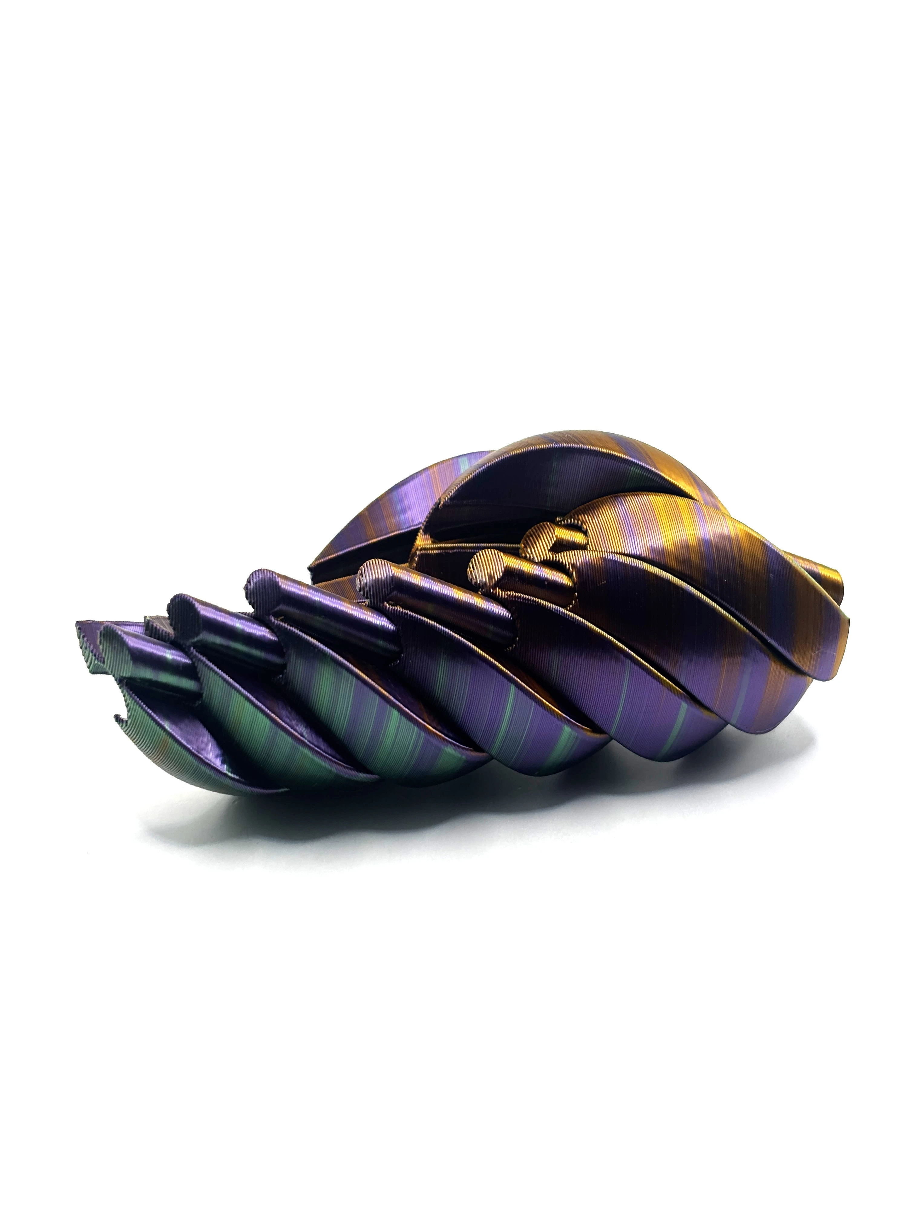 Materiał: PLA (biodegradowalny, pochodzenia roślinnego) Producent filamentu: polski Kolor: pomarańczowo-fioletowo-zielony mieniący Technologia druku: FDM Ruchome elementy: tak Przeznaczenie: dekoracja, figurka kolekcjonerska, ekologiczny prezent.