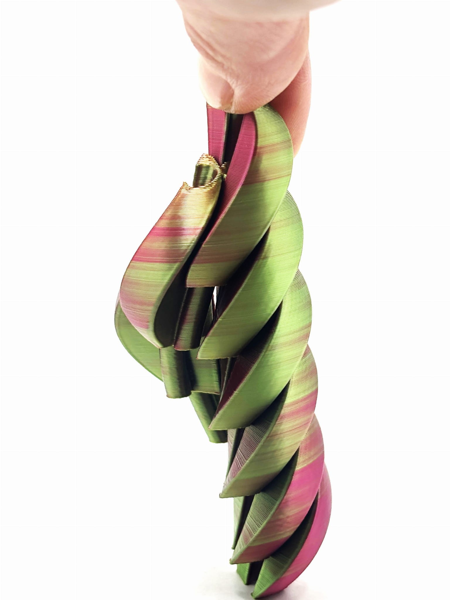 Antystresowa Zakręcona Piłka 3D to unikatowy gadżet wykonany metodą druku 3D z wysokiej jakości filamentów o satynowym wykończeniu. Spiralna forma symbolizuje ruch i harmonię, a ergonomiczny kształt sprawia, że przyjemnie leży w dłoni. Doskonale sprawdza się jako antystresowy element biurkowy lub kreatywny prezent. Gadżet antystresowy 3D to proste, ale efektowne akcesorium zaprojektowane z myślą o relaksie i stymulacji sensorycznej. Wykonany metodą druku 3D z materiału PLA, charakteryzuje się precyzyjną geometrią i trwałą, lekką konstrukcją.