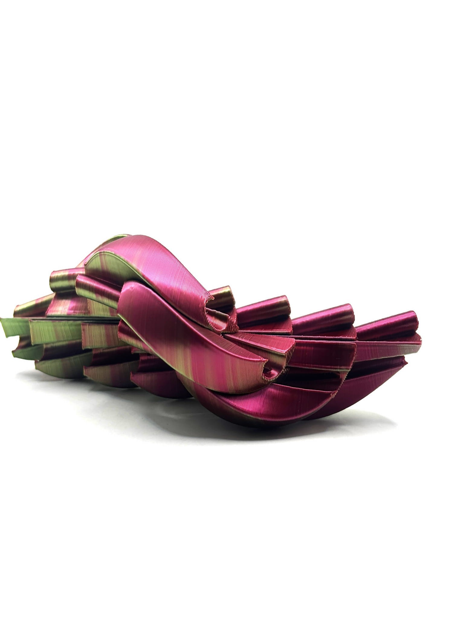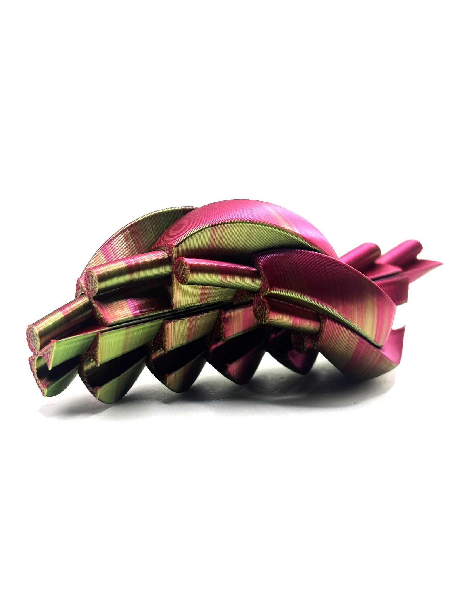 Materiał: PLA (biodegradowalny, pochodzenia roślinnego) Producent filamentu: polski Kolor: różowo - zielony mieniący Technologia druku: FDM Ruchome elementy: tak Przeznaczenie: dekoracja, figurka kolekcjonerska, ekologiczny prezent.