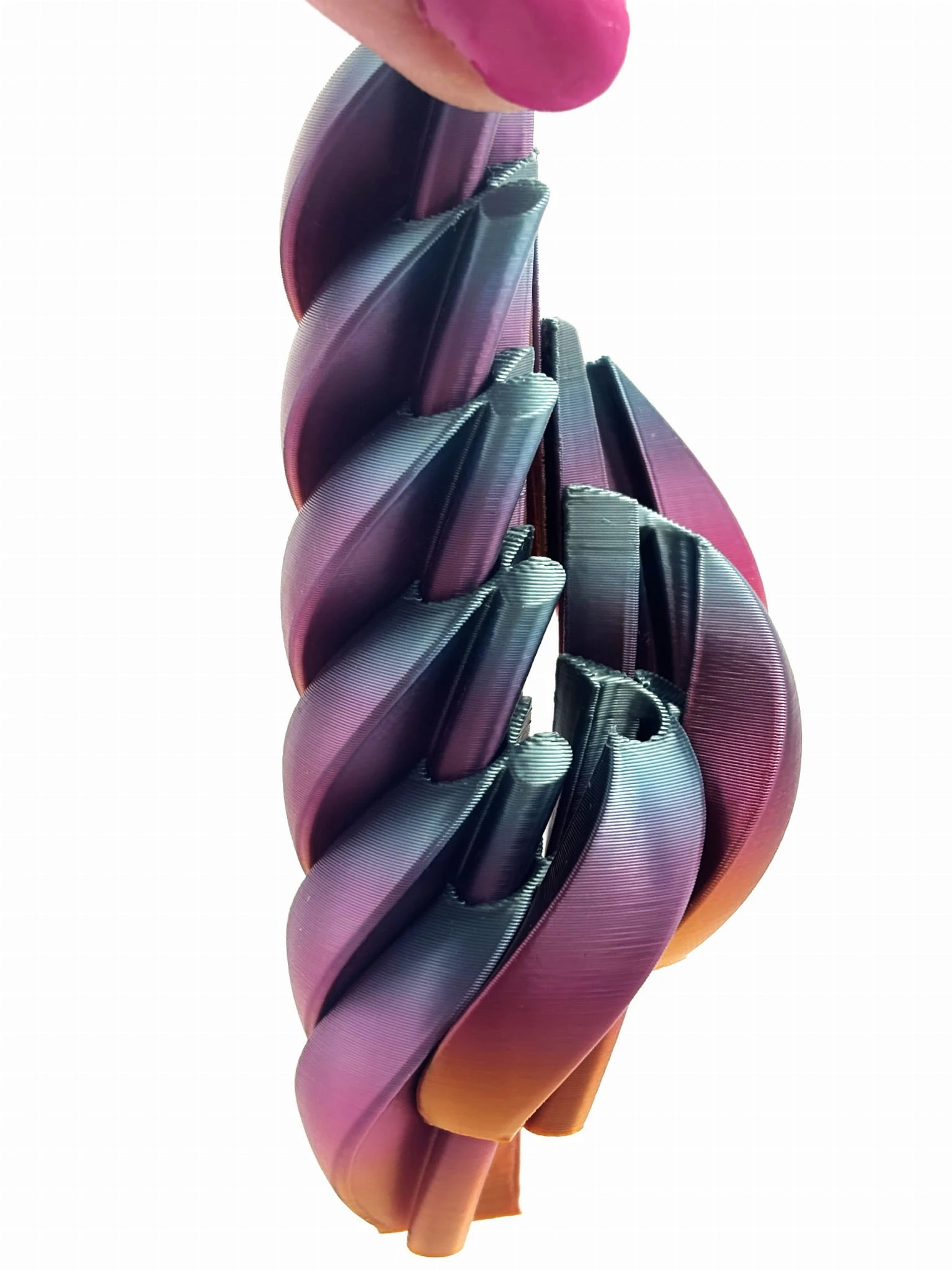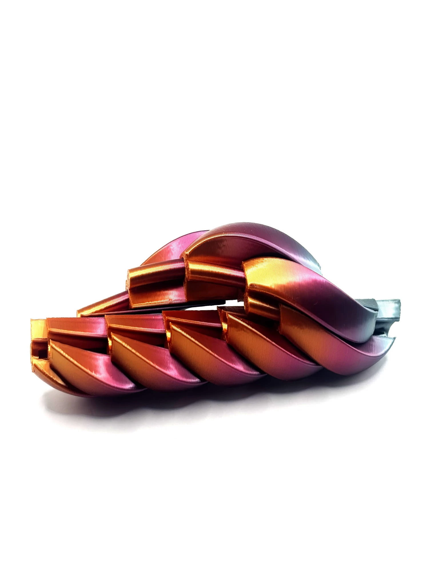 Antystresowa Zakręcona Piłka 3D to unikatowy gadżet wykonany metodą druku 3D z wysokiej jakości filamentów o satynowym wykończeniu. Spiralna forma symbolizuje ruch i harmonię, a ergonomiczny kształt sprawia, że przyjemnie leży w dłoni. Doskonale sprawdza się jako antystresowy element biurkowy lub kreatywny prezent. Gadżet antystresowy 3D to proste, ale efektowne akcesorium zaprojektowane z myślą o relaksie i stymulacji sensorycznej. Wykonany metodą druku 3D z materiału PLA, charakteryzuje się precyzyjną geometrią i trwałą, lekką konstrukcją.
